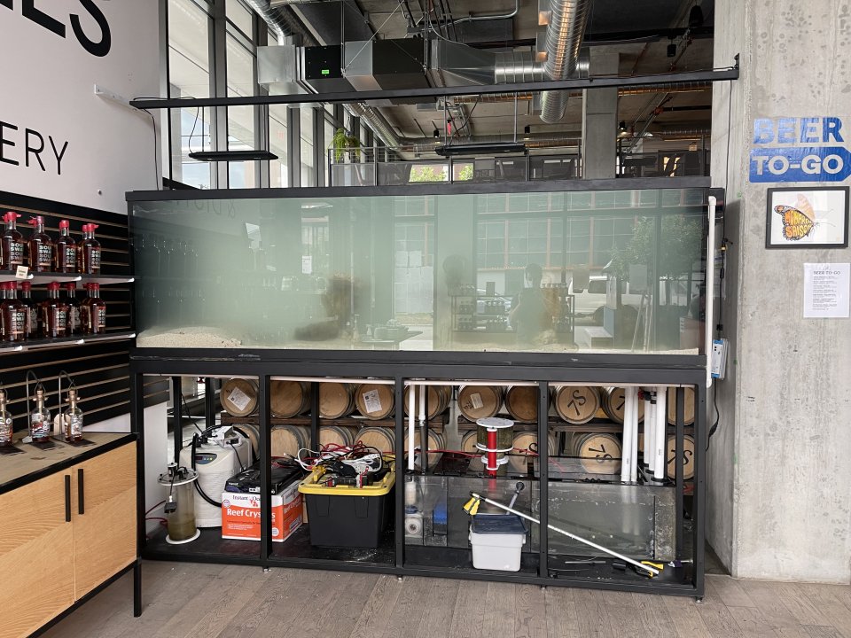 I built a retaining wall out of rocks, see on the far left here, and filled it with sand and have it sloping down covering the rocks to the main tank. Plan is to put 5-6 garden eels in that spot and give them a cozy little bed. Might add more sand but it’s 6-8” deep currently.