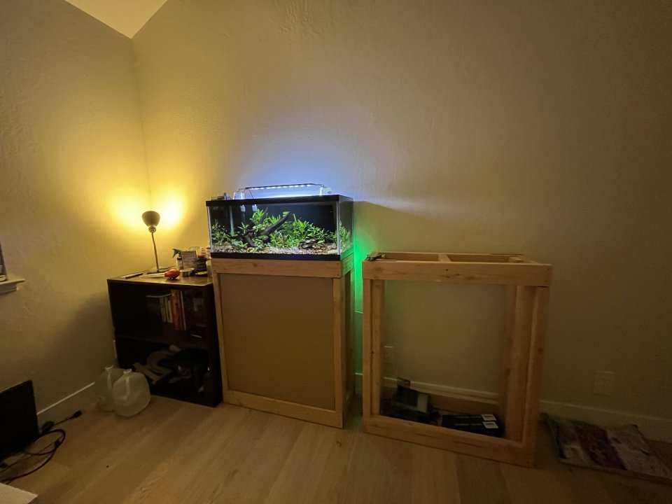The tank being set up next to my freshwater system: