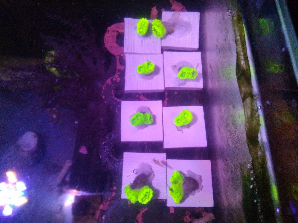 I transferred the damsel fish to the main tank after taking down the experimental tank. It lived and bullied the clown fish for about 2 months and then died to an anemone. Many of the zoas have fallen and the victors are starting to grow pretty well, but slowly.