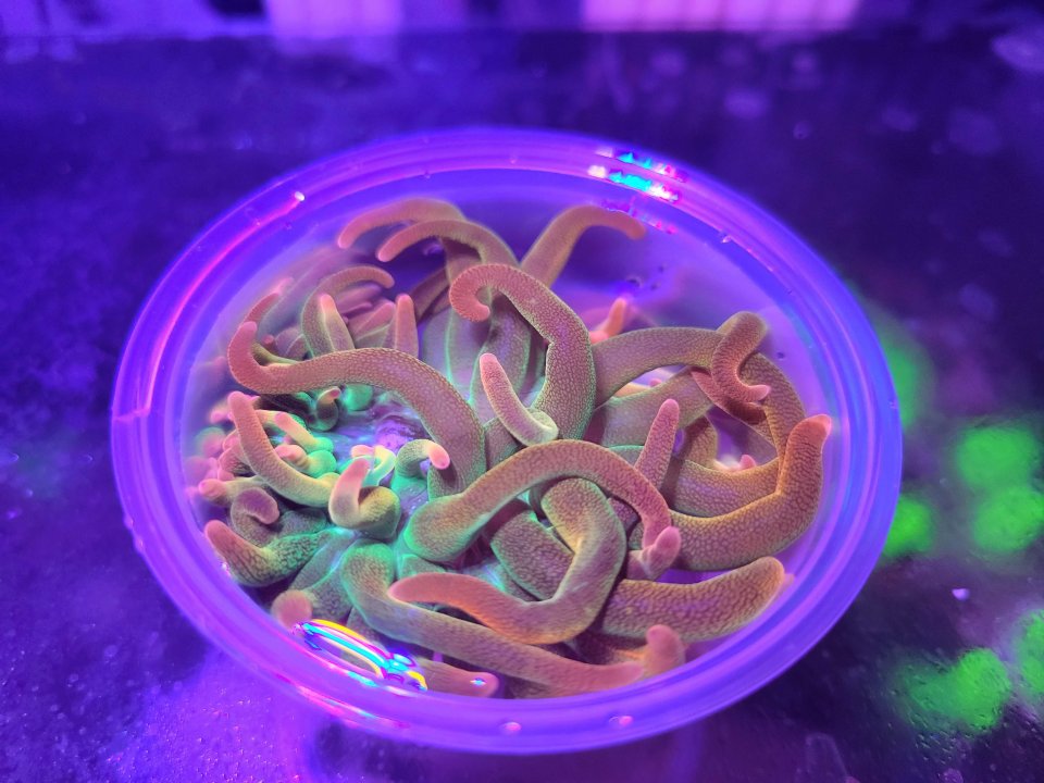 It looks like after putting in a bunch of toadstools / leather corals that shed, the anemones are not very happy. Most of em are walkin around and are pretty small compared to before.