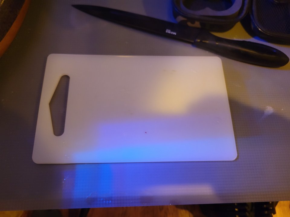 I have the same setup that I have from when I cut the maxi mini carpet anemones: 1 small cutting board and 1 sharp kitchen knife.