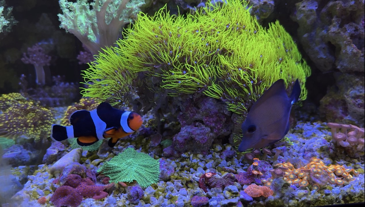 So my macro algae reactor was also neglected during the tank crash. I had burning bush inside of it and Red Gracilaria. It actually went un opened for more than 2 months. When I finally did opens it, it was a slushy of dead algae in the middle and there was mostly Gracilaria that was close to the LEDs alive. With a UV Light I was able to find small leaves of the burning bush that were about nickel size still alive. I cleaned things up and put back what was still usable. A lot still had green slime algae stuck to it. I also added plastic mesh for knitting to separate the two algae’s. Trying to give the burning bush space to grow rather then have the Red Gracilaria bunched against it. I also bought a new USB tower since I plug 3x led strips in the other one was giving out (8$) got a more better built one this time (15$). I also increased the light schedule on the reactor to even longer (10+hrs). Lastly I started to do maintenance on it every 2 weeks or so and the results are awesome: