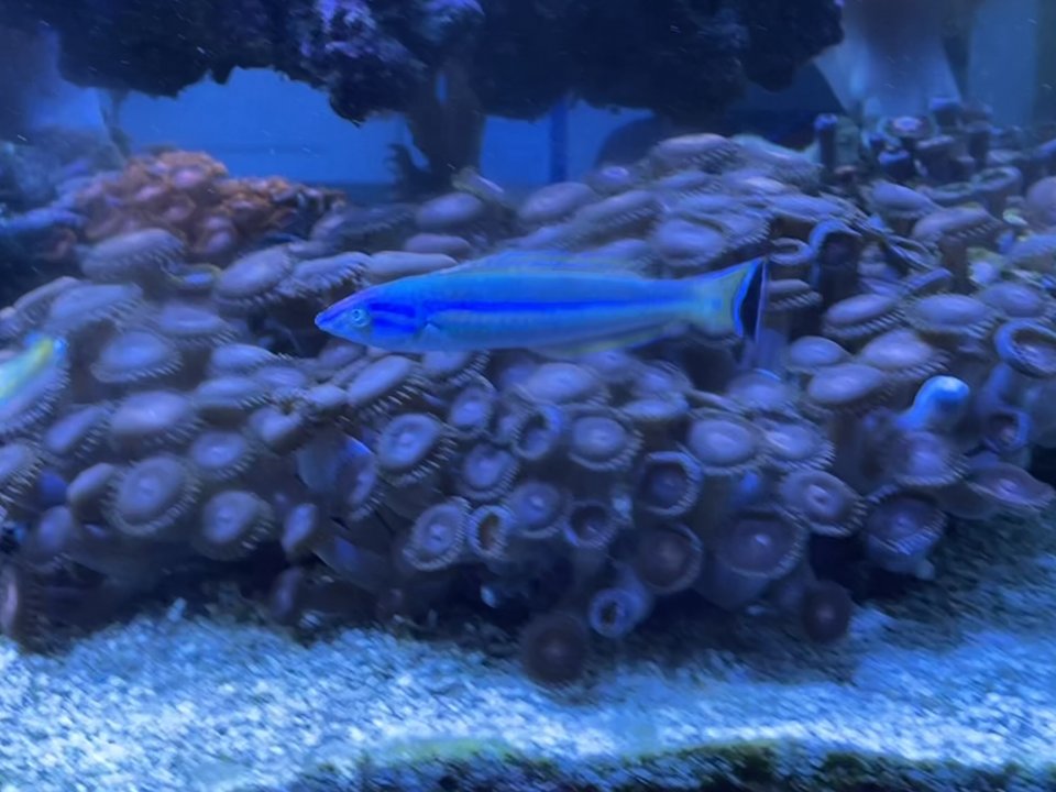 The purple pencil wrasse came out to eat today. Pictures don’t do it justice, it’s such a beautiful fish. Few things are more rewarding in reefing than seeing a newly introduced fish go from a shivering, fearful mess in the corner to a part of the community.