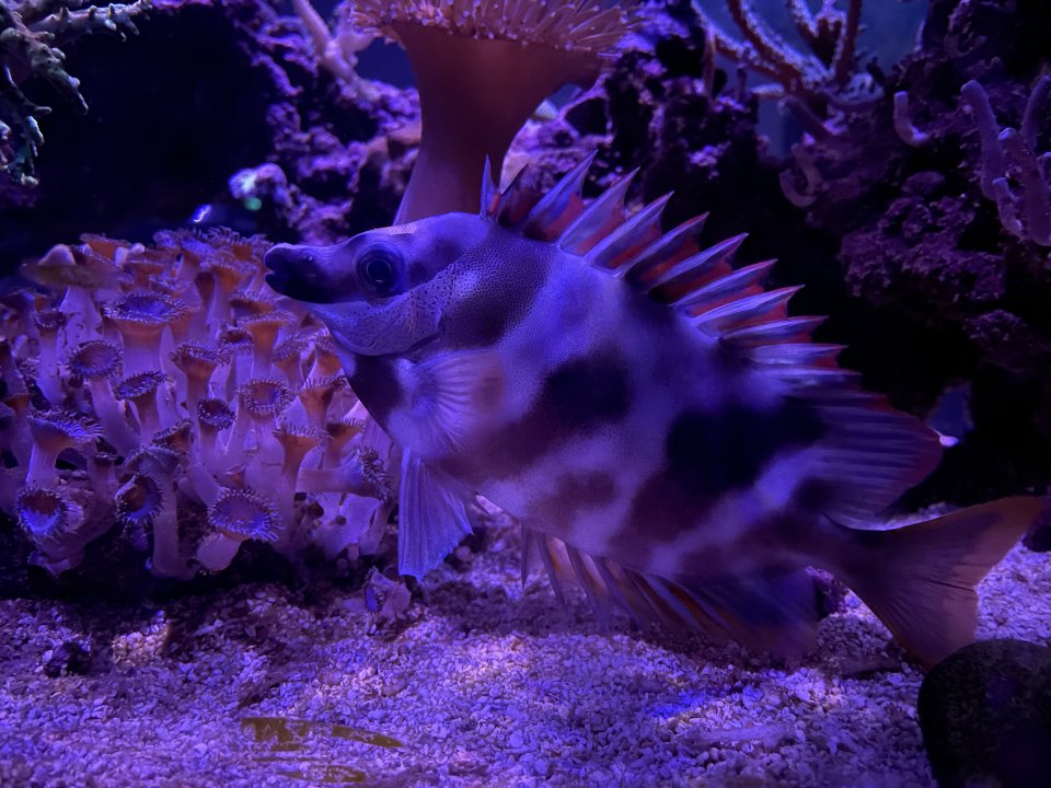 The orange striped pencil wrasse came out to eat with the whole crew!