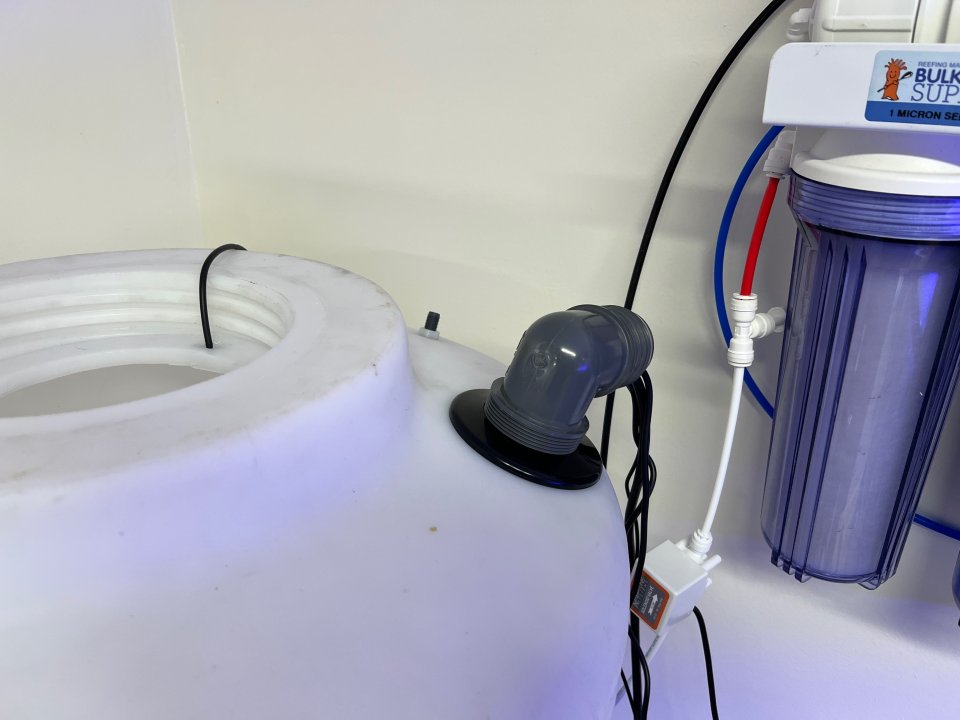 • do the plumbing (AWC waste line, AWC to sump, RODI -> this bin