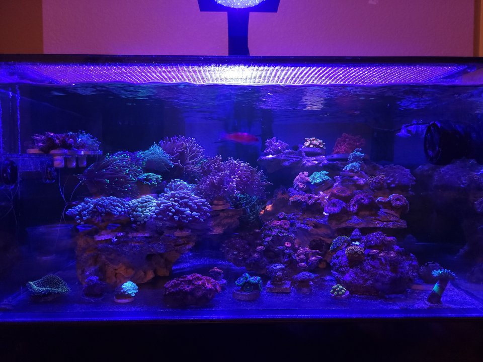I decided to swap out the AI Prime 16HD as I felt like it wasn't lighting up the edges of the tank very well. On goes my RedSea LED90. Definitely going to need a PAR meter soon as I only have it at 30% right now and its already a lot brighter.