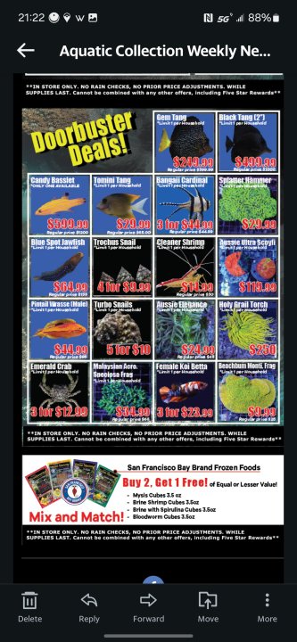 Zooming in I would definitely say that the emerald crabs, trochus snails, and tomini tang seems like stand out deals.