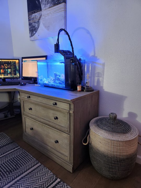 Put the heater on top of the return pump. Will add ATO and at a later date.