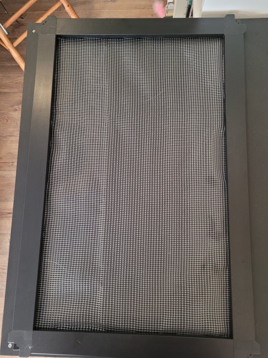 I took apart the mesh lid that came with the AIO, replaced the ¼” mesh with 1/8” mesh since I’m keeping small fish, and reassembled it. It doesn’t look too bad of a job, haha. Could be better.