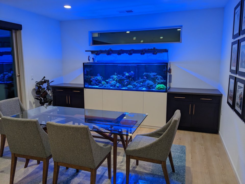 It's been one year since moving into this tank from the last 120 gallon peninsula, so it was time I scraped the glass and give it and the inhabitants some proper shots! The first year has had its share of ups and downs. Some my mistakes, so unknowns. Not the same level of thriving as the last tank but 1 year is still young in the big picture. With such a wide tank, I can't quite get flow dialed in for a mixed reef where sps are happy with high flow, but LPS not so much. With the calcium reactor dialied in, things are on the upswing and I'm seeing growth again. Even ones that have only encrusted for years I'm seeing axial coralites finally!