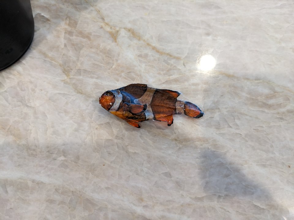 In bad news, lost my clownfish of 8 years and 3 tank moves :( Found her dried up behind the stand so assumed she jumped. I've never put a screen on top for aesthetic reasons, but maybe it's time. She wasn't the most expensive or rare, but very sentimental.