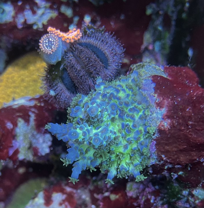 Is that urchin sporting some Utter Chaos? LolFirst time I’m feeling like my angry birds acro is going to make it and grow into a colony since I bought it from AquaSD in 11/2019. It looked like it was going to die the first year and then looked, well, angry the second year. Maybe someday it will also get the colors back it had when it arrived