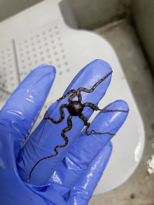 Then I saw the brittlestars spawning last night - the six-leggers all started doing it after I tried to frag some overgrown acros which released a lot of coral slime and seemed to kick things off - is it possible there is some starfish natural selection happening in my tank? Is it possible the six-leggers are a “leg ahead” when it comes to asexual reproduction - that is, starting new starfish by dropping legs here and there?