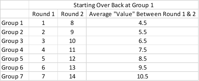 If you draw group 1 (first) or last group (7) all the other groups get two rounds of picks before you ?
