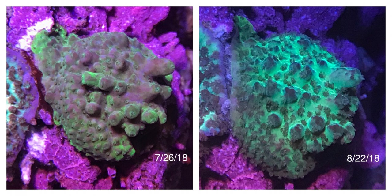 Mine had easily doubled in size from the pic back in August. Moved it in October or so...then it RTNd a few months later. But, I now see a few polyps coming back.