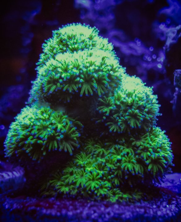 I completely agree. Another simple and bright green coral, but it's fluffy polyps make it that much cooler. So I'm with you there. Oh, and I also picked up a WWC Duke Nukem shroom from you at that swap. What a beautiful mushroom! Thanks again!
