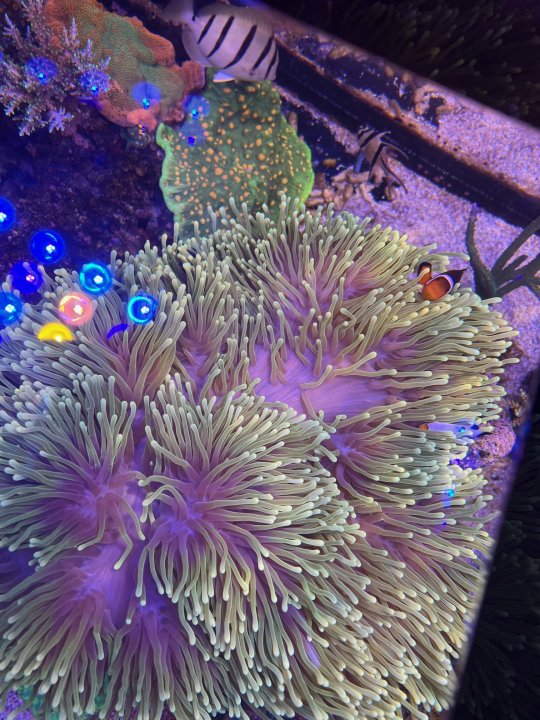 oh yea, the light colored part of the tents extends way further down. looks like it is super happyYeah - to a new home. It wouldnt stop moving for me, and my tank was getting too dense with coral to keep moving things around to avoid it. It went to a good home and stayed with the paired Clarkii, they look happy together in their new tank!