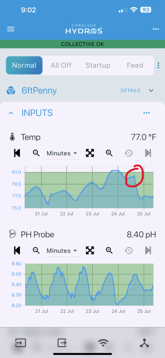 Couple cool things worth sharing. I bought two of those battery-powered USB fans that @JVU suggested in the power outage thread, decided to test them out yesterday during the heat wave. My tank was swinging between 76 and 81. Tank didn't seem to mind but I wanted to try the fans out. Two of them on my tank (6ft) made a surprisingly huge difference, you can see when I added them: