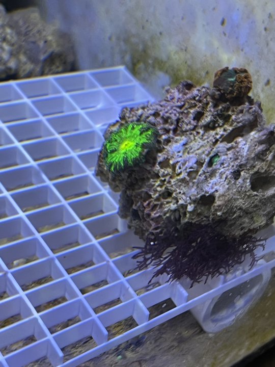 Also picked up some cool stuff from Erin yesterday, some mini carpet anemone, the Hawaiian anemone, cool zoa, some blue ochtodes macro algae, and some trumpet thing I forgot the name of. Here’s the algae and nems:
