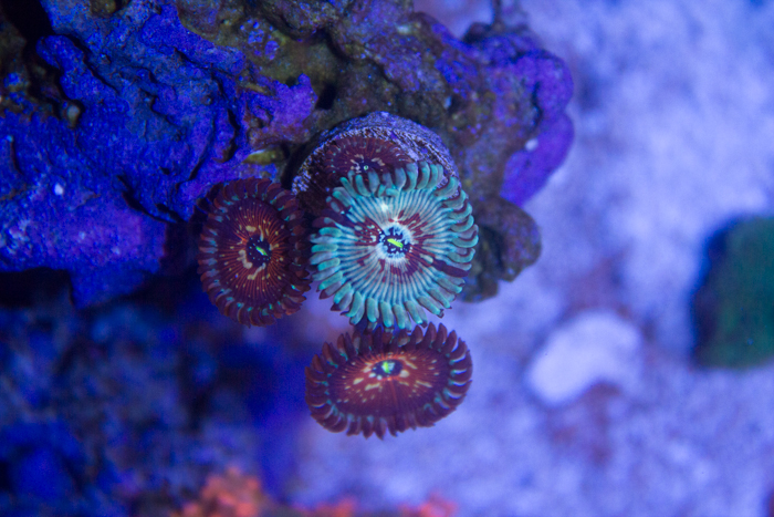 -A couple days after this zoa was put in my tank, this zoa and another zoa began closing up. I put them in lower light to hopefully recover them. Ahhhh zoas and their random melting episodes.