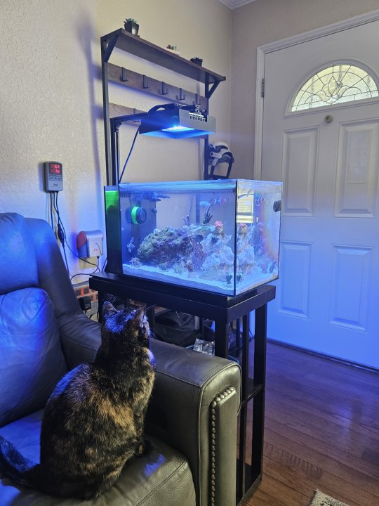 You enjoy your porch often. When you do, leave the door open for natural sunlight to feed the tank.I picked up a mount from @richiev today. I also moved the tank. I think it looks pretty good here.