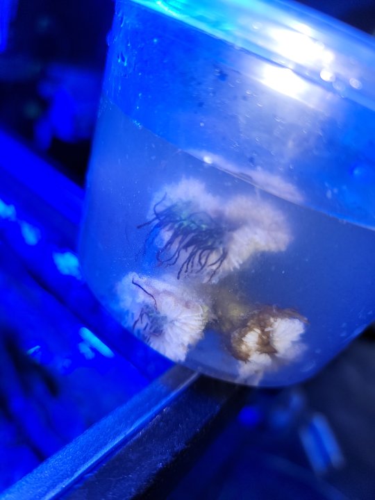 I didn't have enough time to set up a qt tank for my knicks so I put it in a container and floated it in my sump. This is what it looked like after work today.