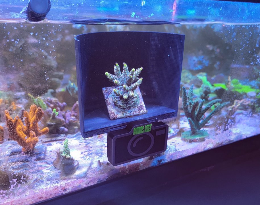 I just had Chris from Rhinos Reef print me this amazing photo booth. It really neat and so far its the best one I've used. It has a couple of adjustments on the base so you can either raise the frag being featured or angle it towards the camera.