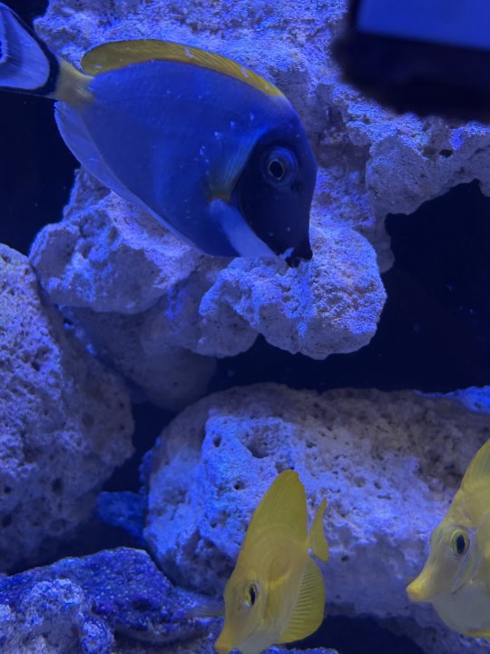 Fast forward to yesterday, I see larger number of spots on PBT and it just looked very lethargic and a little imbalanced (like a parent, you can tell when your kid isnt behaving normal, and PBT is not being its normal self today).. Nothing changed, except I added more RODI water in the ATO which I am convinced is causing some distress to the fish by adding some unwanted stuff in the tank, which in turn causes these mucus cones to appear on the fish.
