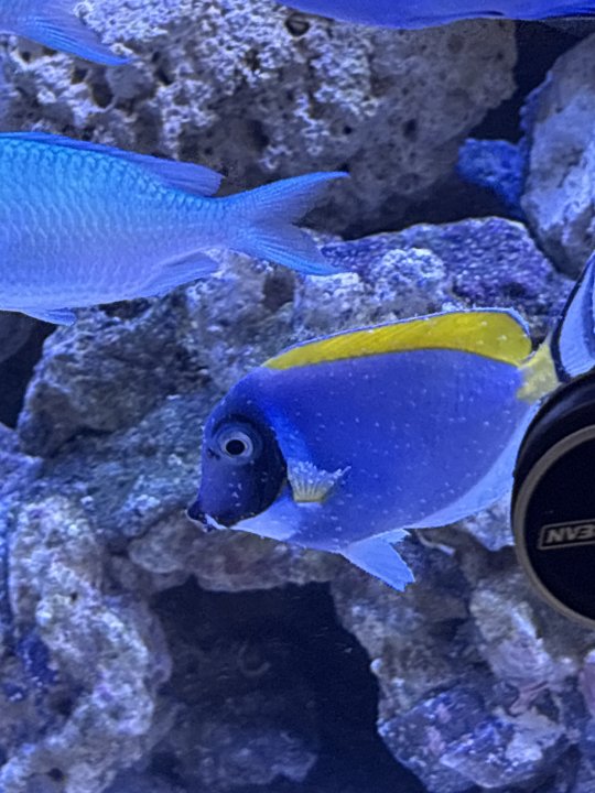 Err.. didnt get any emails from BAR so didnt check the thread.. thank you all for your comments, very valuable.. The PBT was laying down on the side last night and going close to the wavemaker to help with the irritation.. but has been swimming and eating since morning.. I added nori to the clip and it is eating well (showing less interest in flakes and pellets though).. Blue tang meanwhile got a sore/cloudy eye.. And I see some spots on yellow too (attaching the pics).. I maybe wrong and it maybe more than just mucus cones, but I couldnt sleep last night thinking how can I treat all these fish at the same time.. I want to give PBT a freshwater bath to check for flukes, but catching it is going to be very challenging.. As one last resort, I am getting Prazipro today and will add it to the main DT as per the dosage.. Hope it helps with some of this stuff on the fish.. God, I feel so responsible for these little lives! I hope everything turns out ok