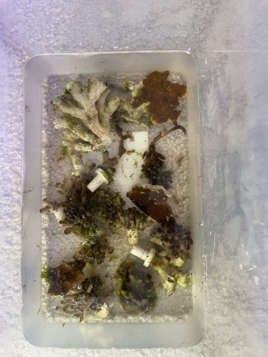 I have clumps of Zoas, Candy cane and red monty maybe others. You have to bring your own container.
