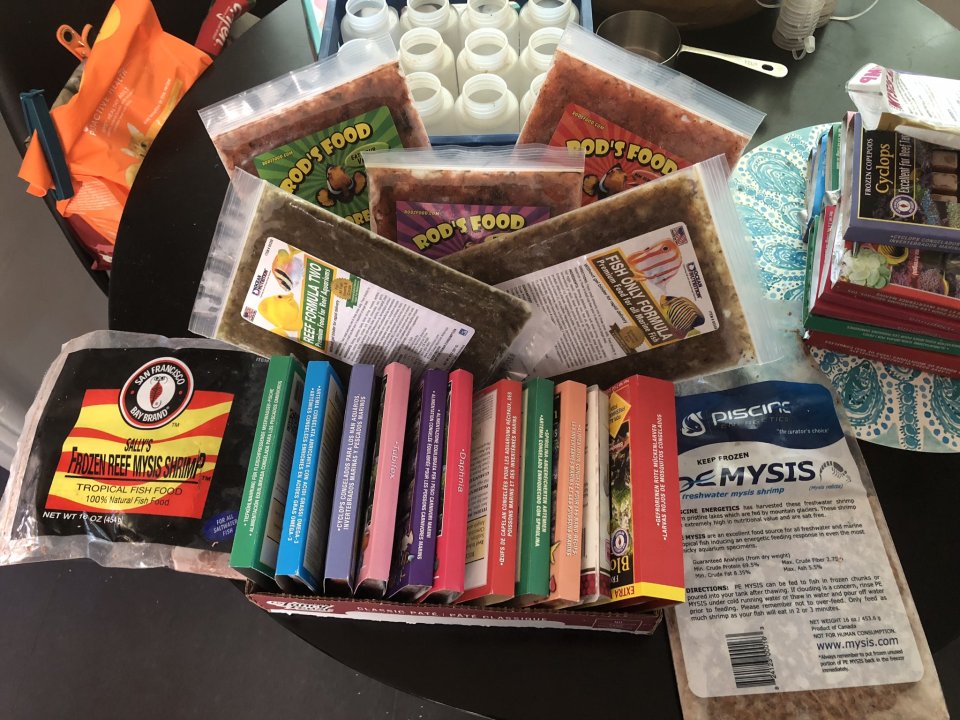 I also use TDO pellets but not much since frozen keeps nutrients lower more easily. Bloodworms from SF Bay are super clean—I use that once in a while for but may phase out due to cost (ie, mysis is cheaper). I only had the bloodworms around since I used it to train my Copperband. Have used LRS (still have some) but it has some large chunks which don’t always get eaten by the fish but is eventually consumers by the CUC. I also have frozen clams—I put one into the tank once a week for my Copperband.