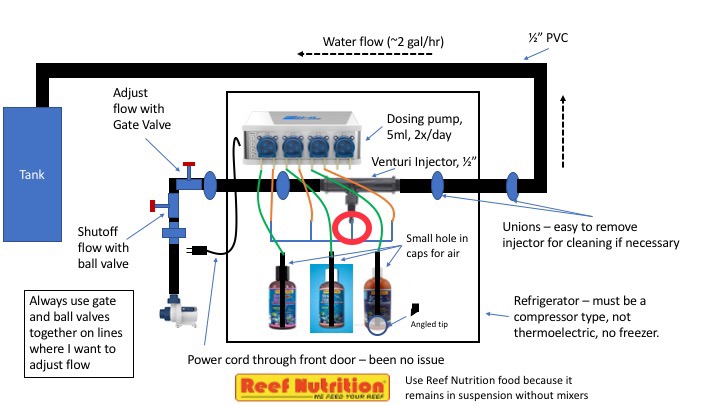 ... You could introduce a fresh water clear after a feeding, but then you are using up a dosing head for that function. Also, it takes up more physical space for the venturi to be out of the refrigerator.