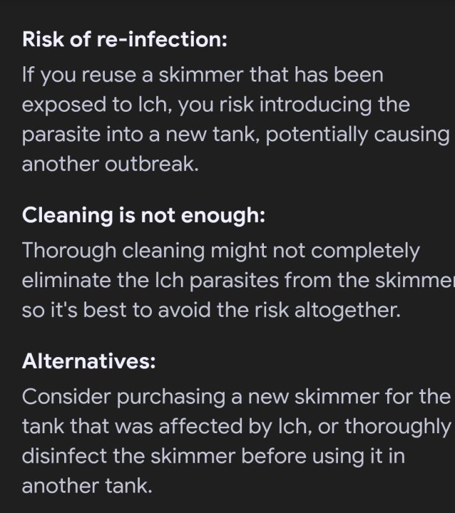 Just to clarify, most of the evidence points towards velvet, not ich, so follow the cleaning protocols for that. Bobby at Humblefish has this as his protocol if you plan on reusing anything soon: