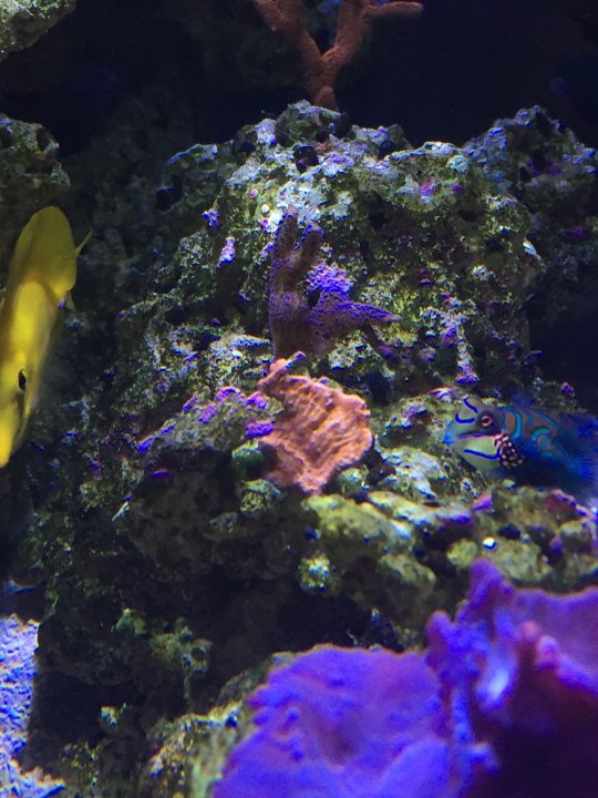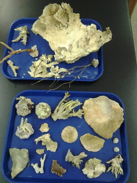 (One group of students is not keen on the idea because our lone surviving big brittle star hangs out in the center of the cup formation. These are the same students who stopped algae scrubbing one side of the tank because a shrimp "attacked them" when they tried to clean there and decided to triple the feeding amount without telling me so "everyone would get enough food.")