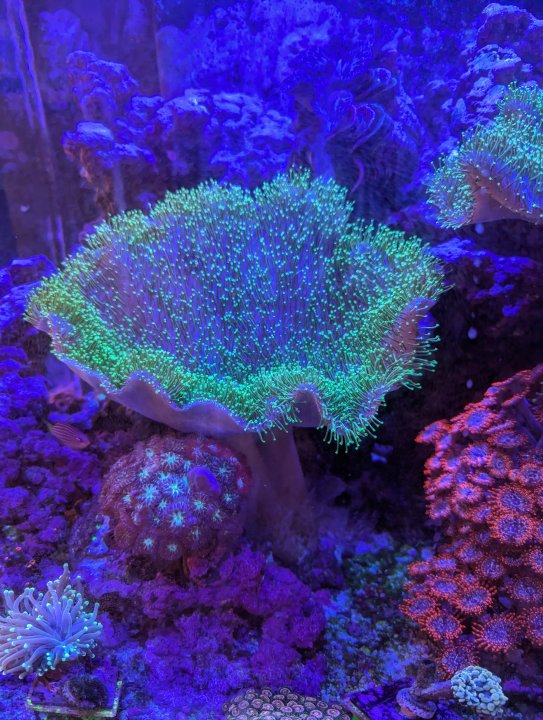 Sweet, what’s the estimate size of the crown? I ask because I have a neon green toadstool about 7 inches across and same high,. different growth pattern it's mushroom like shape except the crown is a flat disk doesn't cup up or down.