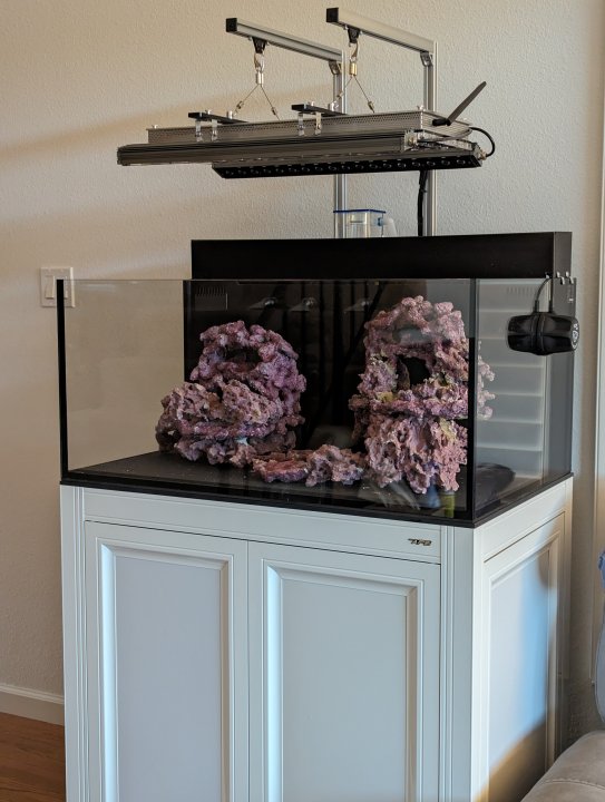 Thanks!Awesome setup! I’ll be following along. I’m debating between this tank or the smaller 50 version at the moment. Where did you find that tray? For the ATO reservoir, do you plan on using a lid or keeping it open top?