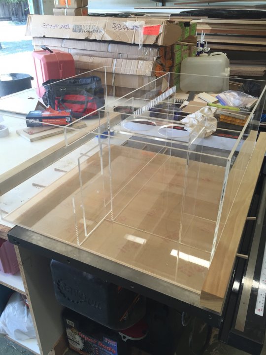Yeah, I changed the sump design a bit from the earlier post. It's got the chamber I'd drains into then over flows into two filter socks (I'm still not sure I'll use them), then into the refugium, then to the skimmer, and lastly the return. I've got a time lapse video of when I leak tested it. I'll have to see if I can get it uploaded.Man Flagg, you are one handy sonofagun. You sure know your way around acrylic (and everything else it seems, argon tanks for welding?!?).