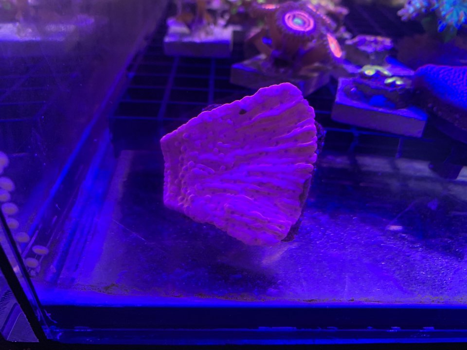 This piece has lost color and become somewhat white in my tank, I have moved it to a low light spot and hope it will color up againThank you @Coral reefer