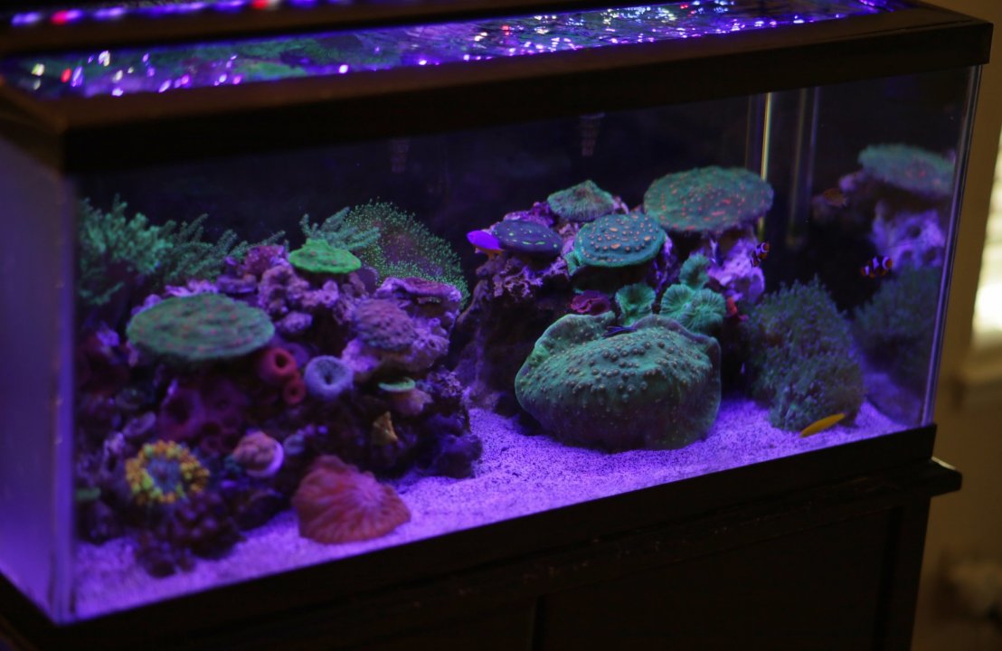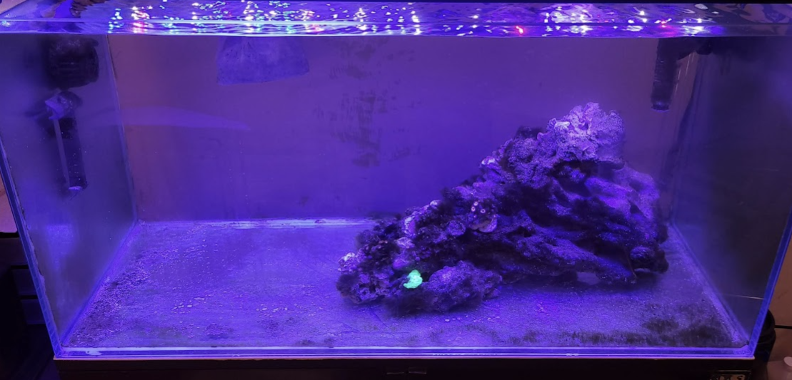 • The tank has some excess algae after the crash but about 70% of it is gone after adding tiny tomini tang, astrea snails, and hermits.