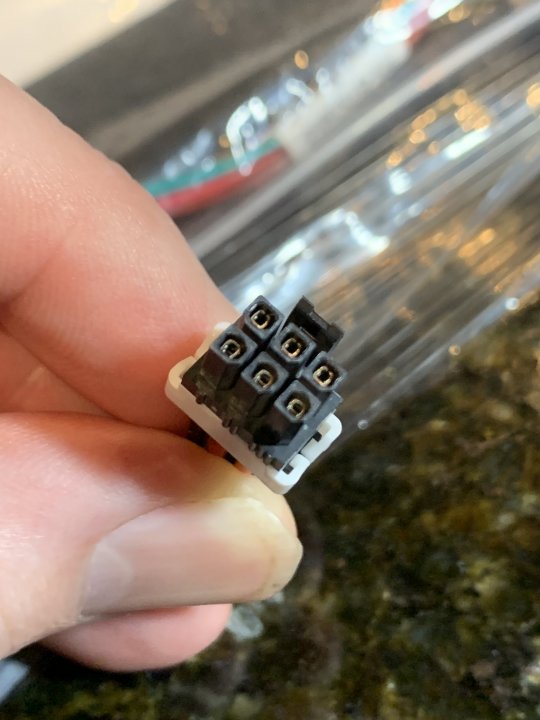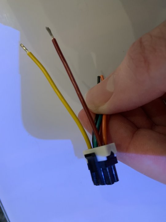 These top 2 wires are the ones to connect with the resistor, the other 4 to be cut close to the plug: