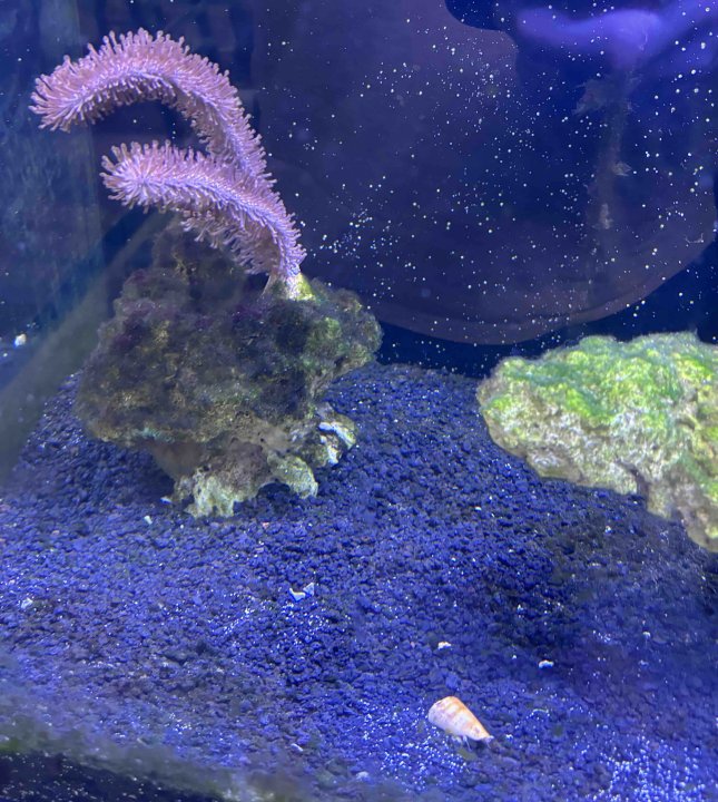 Two of the anemones attached themselves to the shell that I was using as a feeding dish, but I moved onto the main piece of rockwork, and they seem happy enough there.