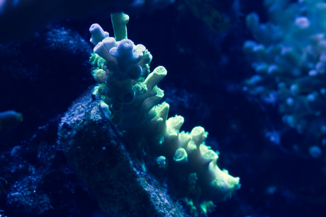 I’m getting the blue on my chunk in the frag tank too. Really cool. High par I think.Mine ended up in a difficult place to get a good pic, but doing well. Very pretty piece, I really like the blue that's forming on the tips.