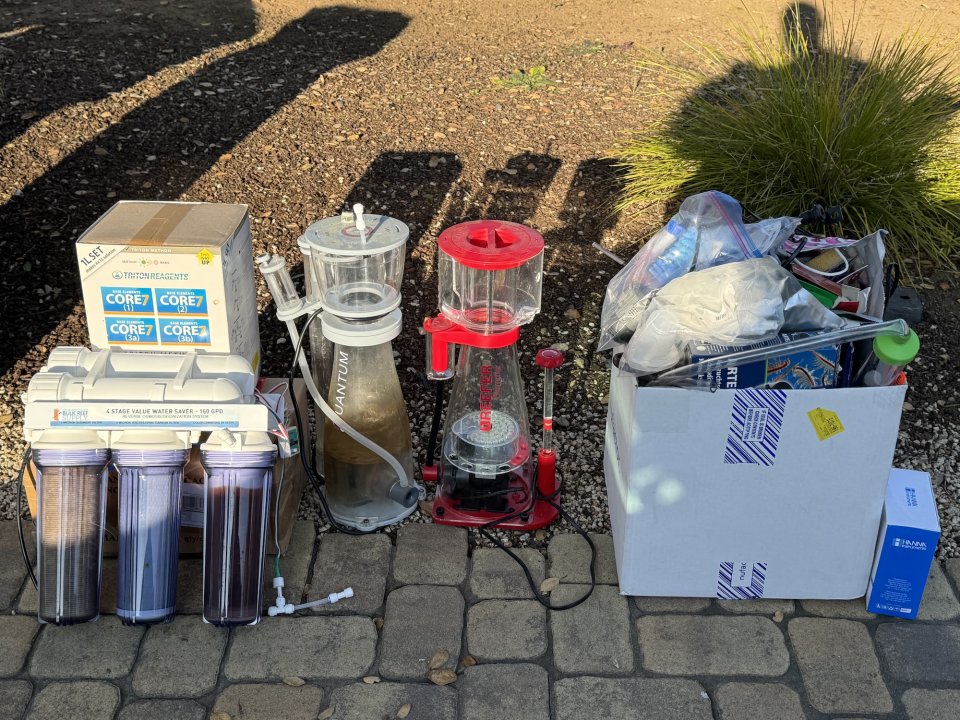 I have lots of saltwater aquarium goodies left over from my aquarium days. Come and dig in. First come, first served. If you find something valuable to you, you’re welcome to drop cash or a check in my mailbox, but it’s not necessary at all. I am at 1010 Clark ave, Mountain View.