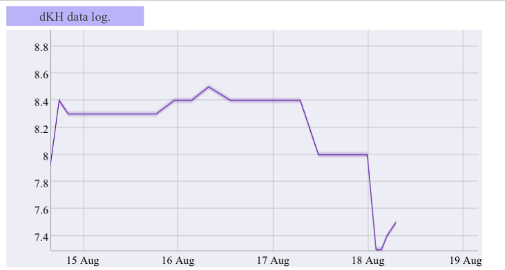 Dosing had me locked in around 8.2-8.4 but my attempt at a switch to kalk due to running low on All for reef resulted in quite a dip to 7.4