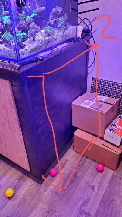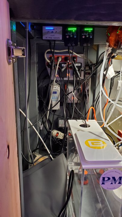 I'm going to put the topoff reservoir under the frag tank, so those tubes along with wires would be going between the 2 tanks, and the cabinet and the frag tank.