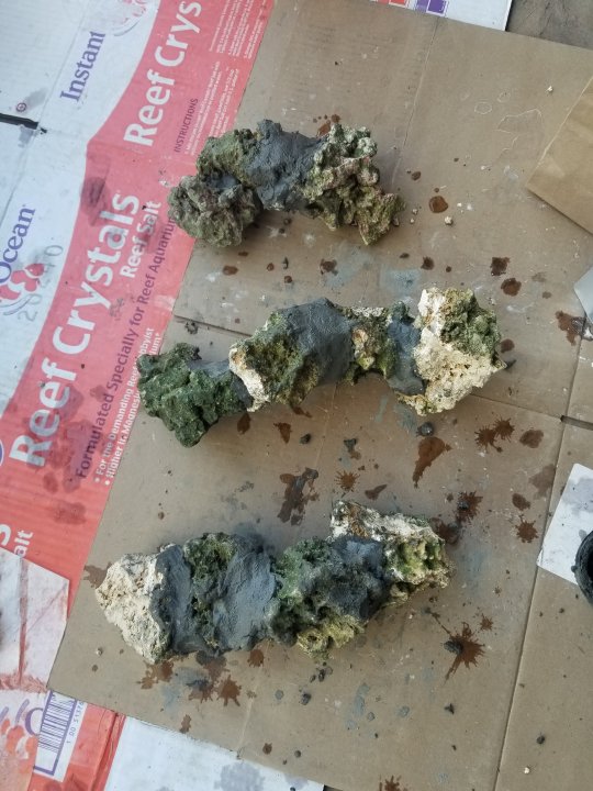 What two part apoxy did you use.Thank you @Baykes for the cement. I took my post digger, which is a big steel rod with a blade on one end, and broke apart my biggest rocks that were in my sump. I then cemented the rocks that looked like they would fit together into 5 pairs. One fell apart, but I was able to take 2 set of pairs and cement them together to make 2 long pieces, and 1 shorter piece. I let the cement cure for a few hours, rinsed it off with salt water, then stuck them in my sump to cure. I plan is to test fit these in the tank after a day of curing in my sump, the use the 2 part epoxy to stick the best fitting one in front of my current arch. I plan to add additional small rocks as needed for support to keep things sturdy.