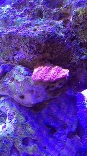 Picked up a nice purple blasto and a cleaner shrimp from a LFS (which I shall not name for now due to the story I'm about to tell). At the store, the blasto looked great but the cleaner shrimp seemed a little low energy. I looked around and saw a few dead ones and the rest were also lackluster. Well when I took the little guy home, temp/drip acclimated and put him in the tank... he keeled over within the hour. So I msged the owner and thankfully, he was kind enough to offer a replacement. I asked if I could just exchange it for something of equal value and picked up a colt coral instead. I also picked up a green rhodactis. It was supposed to have orange streaks but seems to have gone away for now. It is oddly sort of heart shaped. (apologies for the terrible shot of the colt). Edit: Forgot to include the Pink Clove Polyps that I got as well.