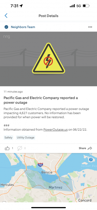 It was restored after a few hours. Thanks for the offer Michael!I have a gas generator you can borrow for a few days if you want to make the drive to Sunnyvale.