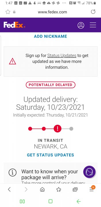 No, FedEx -- it's not "potentially" delayed. It definitely is...