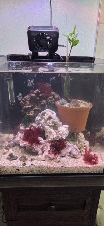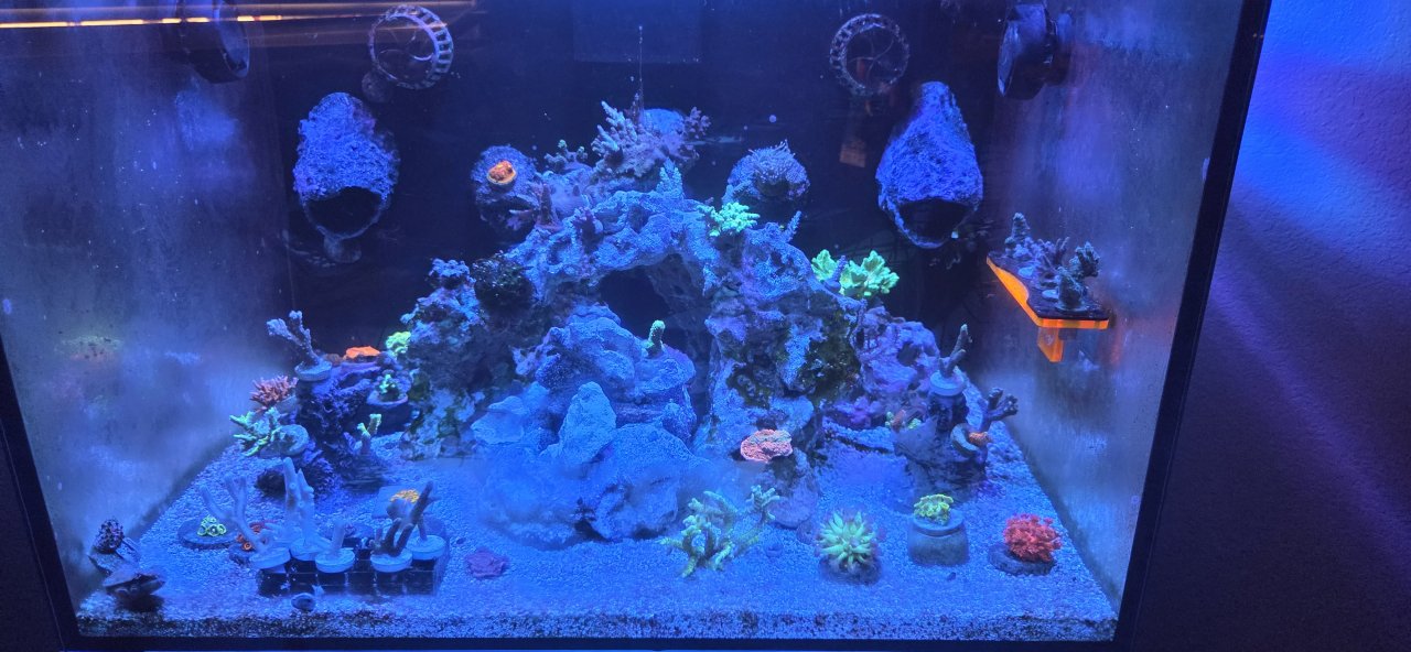 I am a relatively new reefer, around 2.5 years! And suffering from MTS. Currently running a 32g Fiji Cube EXT SPS dominant system as my main display. Innovative marine 20 AIO for my high end nem and random frags, Innovative Marine 15 AIO for soft coral, macroalgae, and a mangrove, and Deskmate 4.8 for a zoa garden and some other random coral.